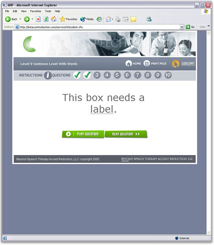 You will be guided through a hierarchy of lessons for each targeted sound. Lessons include consonants, consonant blends, vowels, questions, and common phrases and sentences. Your progress will be automatically tracked.